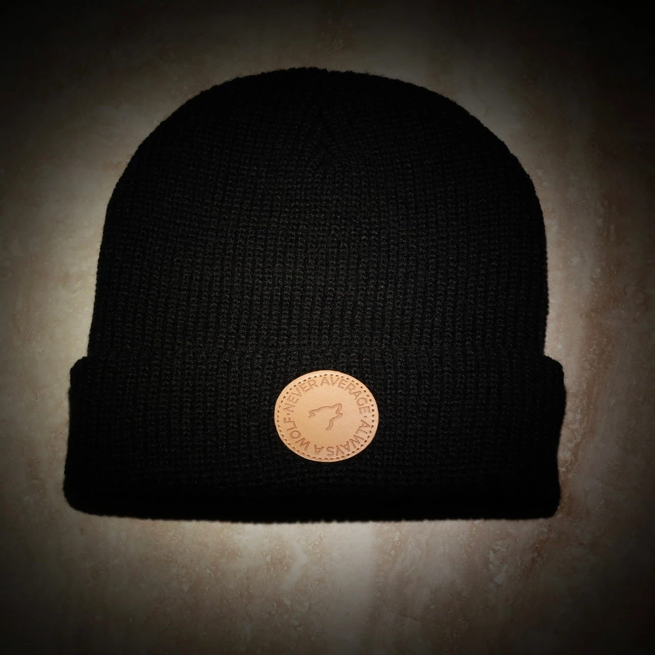 Winter Beanie, Handmade Leather Never Average Always a WOLF Patch. Rep Your Inner WOLF with our Limited Run of Cuffed Beanie.