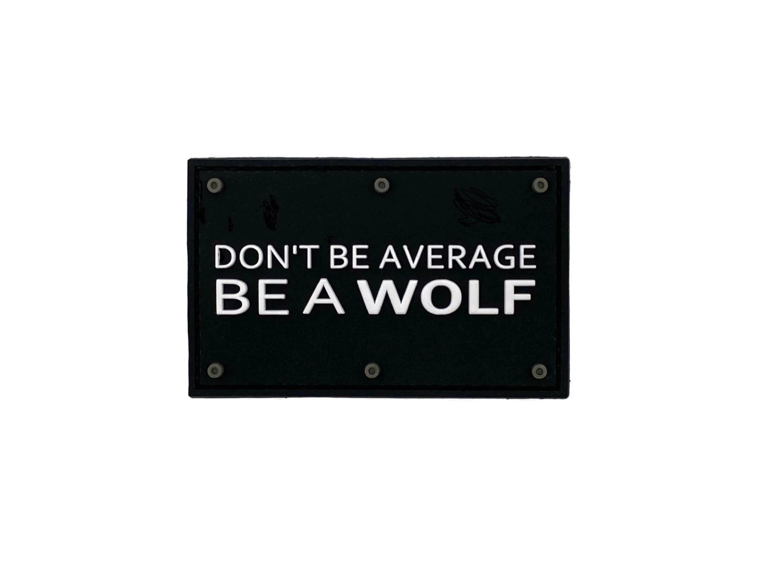 Donโt Be Average Be A WOLF rubber 3D velcro patch White Letters over Black
